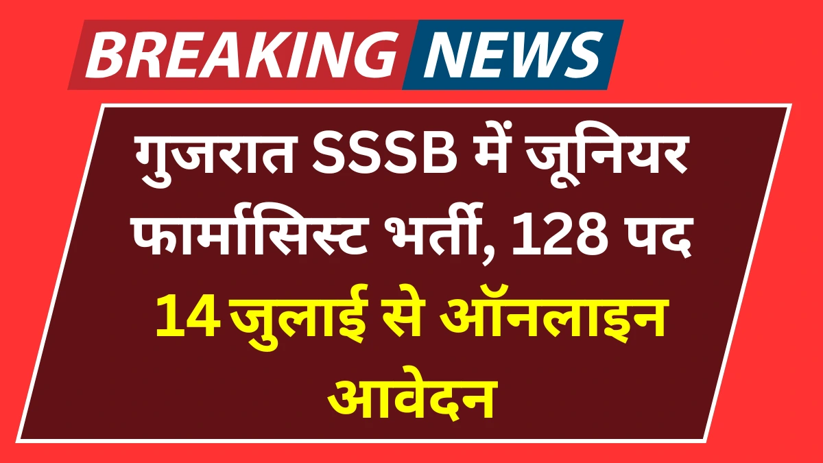 SSSB Pharmacist Recruitment 2025: गुजरात SSSB में जूनियर फार्मासिस्ट भर्ती, 128 पद, 14 जुलाई से ऑनलाइन आवेदन